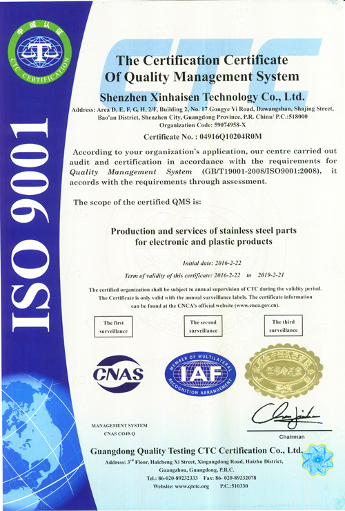 深圳市鑫海森科技有限公司成立于2006年,坐落于中國廣東省深圳市沙井鎮(zhèn),地理位置優(yōu)越,對于我司原物料采購及協(xié)作加工有無法比擬的迅速性和高品質(zhì)性。 我司主要進(jìn)行精密五金件的加工,產(chǎn)品涉及的范圍相當(dāng)廣泛,涵蓋了通訊、聲學(xué)、光學(xué)、醫(yī)療、安防、機(jī)械、航空、陸運(yùn)工具、家電等等領(lǐng)域。本公司目前產(chǎn)能1000^2全自動生產(chǎn)線6條。加工厚度從0.02mm-1.5mm產(chǎn)品的精度可以做到... 【查看詳情】